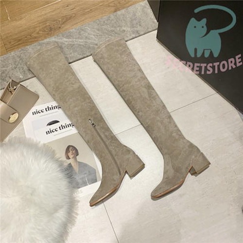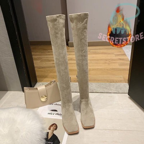 ロングブーツ レディース ロング丈 太ヒール スクエアトゥ トレンド 裏起毛 シンプル ストレッチ 美脚 おしゃれ 歩きやすい 履きやすい ファスナー