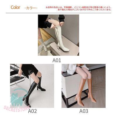 ロングブーツ レディース ブーツ 秋冬用 無地 光沢感 おしゃれ 痛くない 美脚 太ヒール 防寒 PU 新作 履きやすい ファスナー付き 高級感