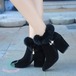 ショートブーツ レディース チャンキーヒール ボア 裏起毛 裏ボア 歩きやすい ブーティ ブーツ 痛くない 疲れない カジュアル シューズ 太ヒール