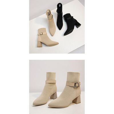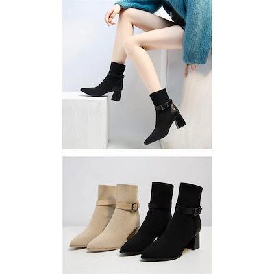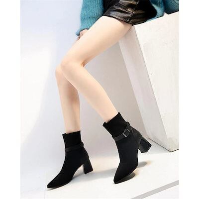 【3日以内出荷】ショートブーツ レディース ソックス風 歩きやすいニットブーツ チャンキーヒール おしゃれ 太ヒール 可愛い おしゃれ 靴 美脚 脚長