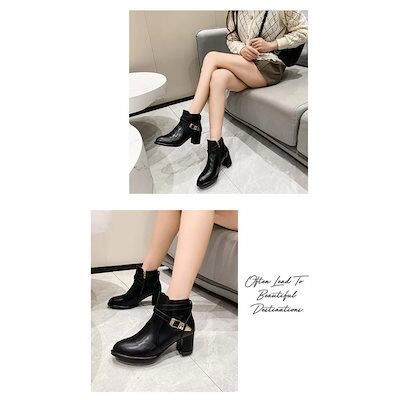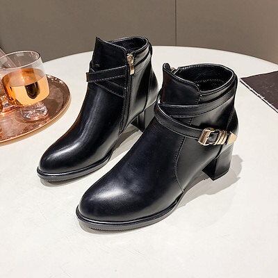 【3日以内出荷】ショートブーツ レディース チャンキーヒール 着痩せ 新作 上品質 えレゲント シンプル 太ヒール 高級感 PUレザー 快適 売れ筋