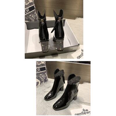 【3日以内出荷】ショートブーツ レディース チャンキーヒール キラキラ 新作 えレゲント シンプル 太ヒール PUレザー 快適 売れ筋