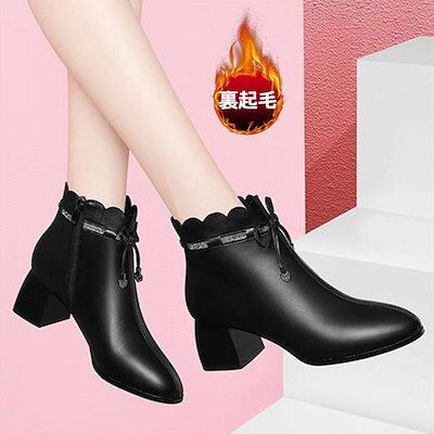 【3日以内出荷】ショートブーツ レディース フリル お姫様風 太ヒール PUレザー 快適 売れ筋 可愛い おしゃれ 靴 美脚 脚長 チャンキーヒール